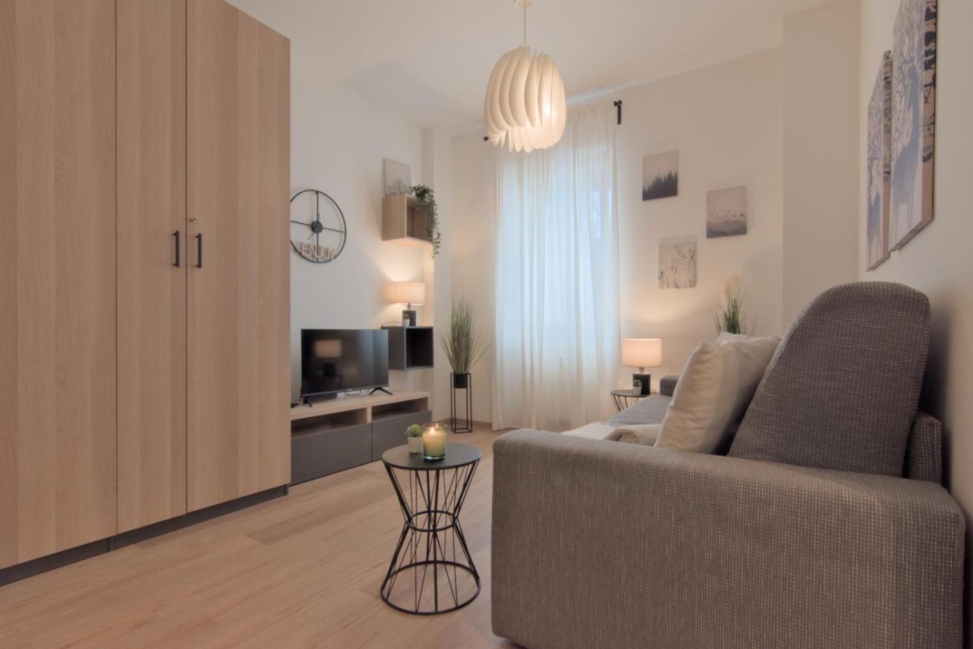 Monolocale. Providing free toiletries, this studio includes a private bathroom with a shower, a bidet and a hairdryer. The fully equipped kitchen features a stovetop, a refrigerator and kitchenware. The studio provides a flat-screen TV, a coffee machine, a wardrobe, a sofa as well as a quiet street view. The unit offers 2 beds.