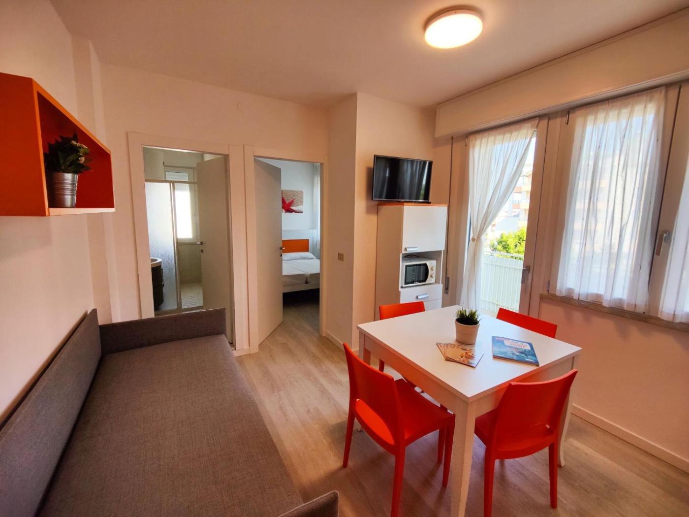 Appartamento. This air-conditioned apartment is comprised of 1 living room, 1 separate bedroom and 1 bathroom with a shower. Meals can be prepared in the kitchen, which is fitted with a refrigerator, kitchenware and a microwave. This apartment features a coffee machine, heating, a TV with satellite channels and a balcony. The unit offers 2 beds.