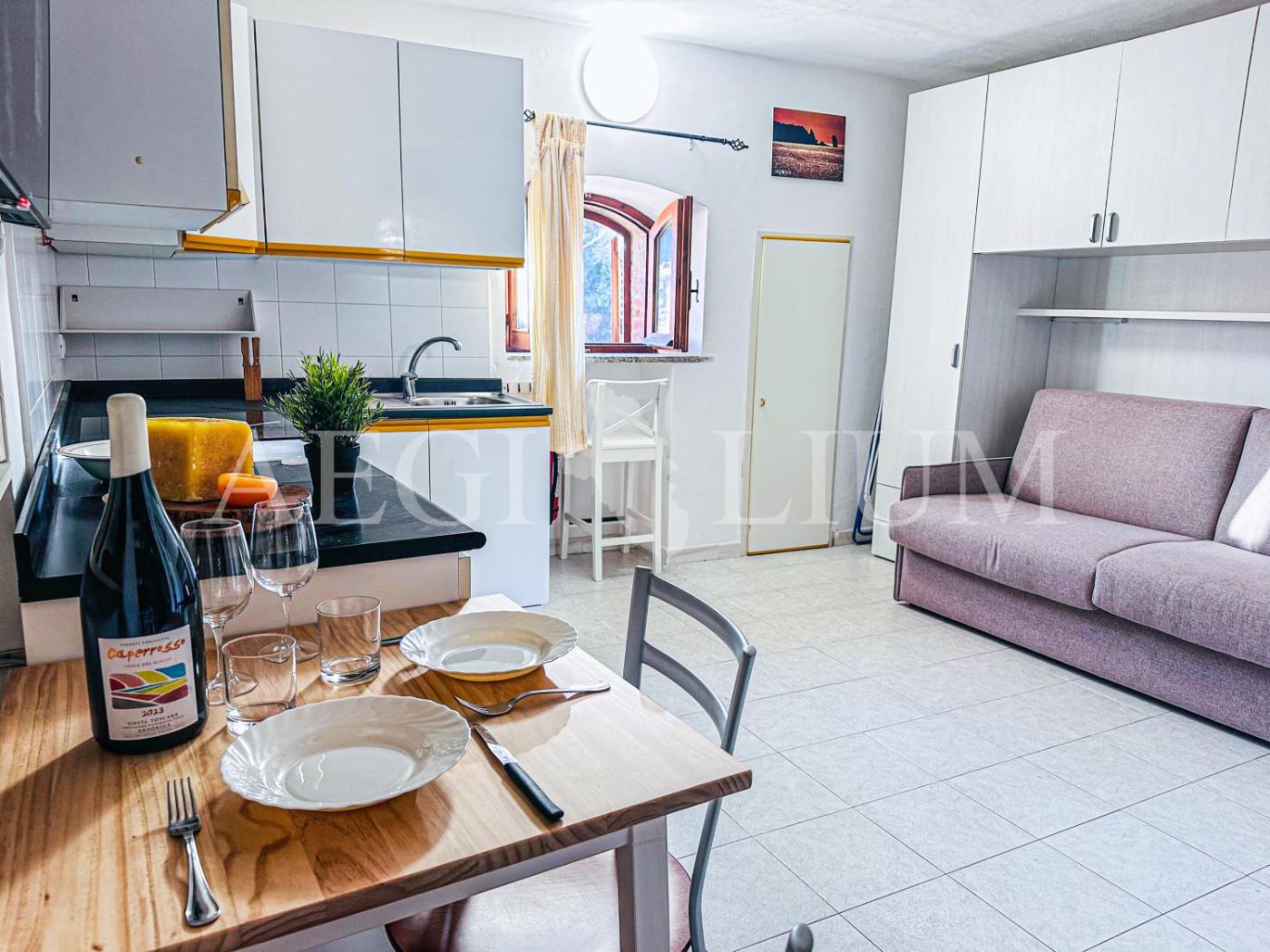 Monolocale. The studio offers a dining area, a wardrobe, as well as a private bathroom featuring a walk-in shower and a bidet. The well-fitted kitchenette features a stovetop, a refrigerator, kitchenware and an oven. The air-conditioned studio provides a flat-screen TV, a washing machine, a private entrance, a seating area as well as sea views. The unit offers 1 bed.