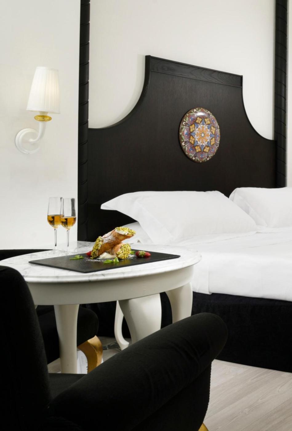 Camera Matrimoniale Deluxe. A vostra disposizione il WiFi gratuito senza limitazioni. Camera particolarmente spaziosa in stile barocco siciliano, dotata di aria condizionata e TV. Il minibar è disponibile su richiesta. Il bagno è completo di asciugacapelli edi cortesia. Al momento della prenotazione siete pregati di specificare la tipologia di letto desiderata. ;