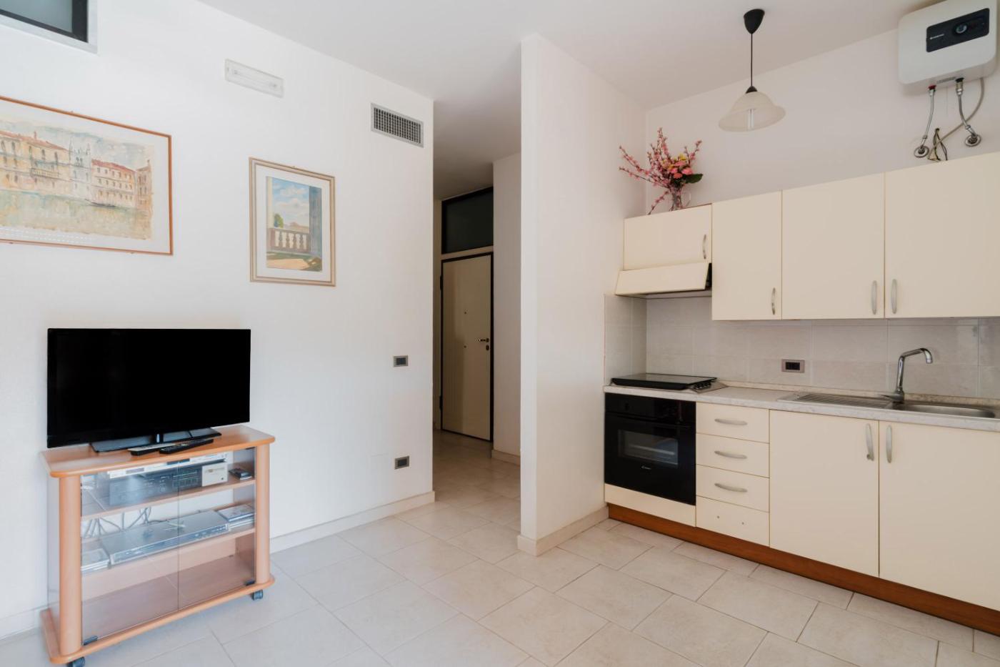 Questo appartamento con aria condizionata comprende 1 camera da letto, un soggiorno, una cucina con utensili e frigorifero, e 1 bagno. Tra i servizi disponibili troverete una TV.