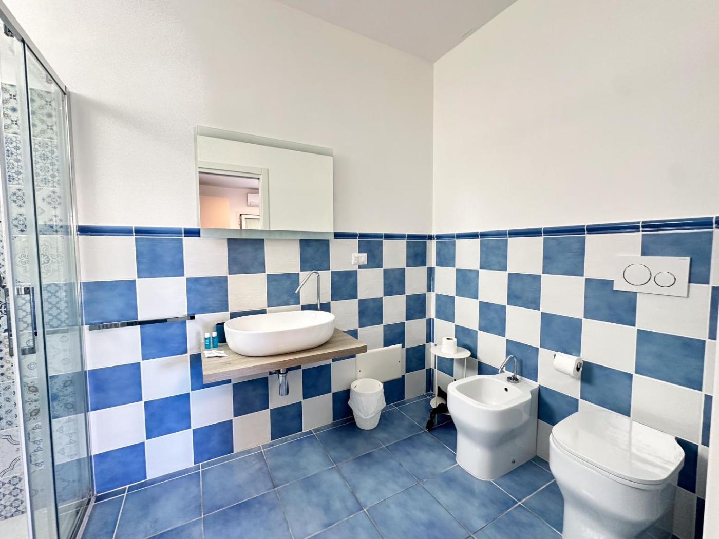 Camera Tripla Standard. Camera tripla dotata di bagno privato con doccia, bidet, asciugacapelli edi cortesia. Inoltre dispone di aria condizionata, armadio, TV a schermo piatto e terrazza. Lalloggio presenta 2 letti.
