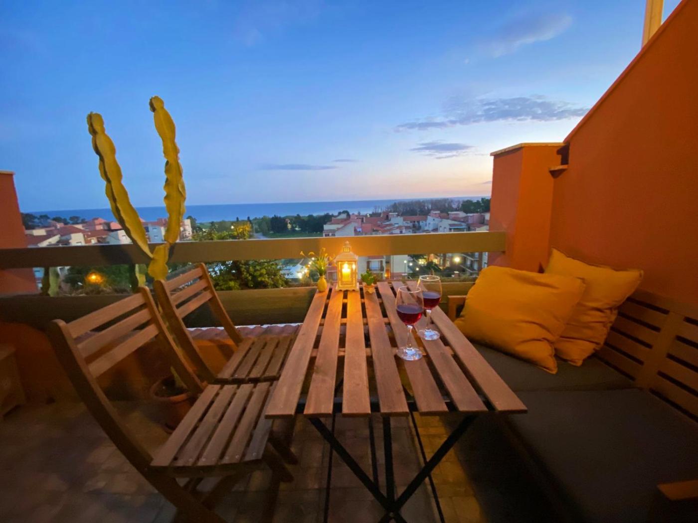 Questo appartamento presenta 1 camera da letto, 1 bagno, lenzuola, asciugamani, una TV a schermo piatto, una cucina con utensili e una terrazza con la vista sul mare.