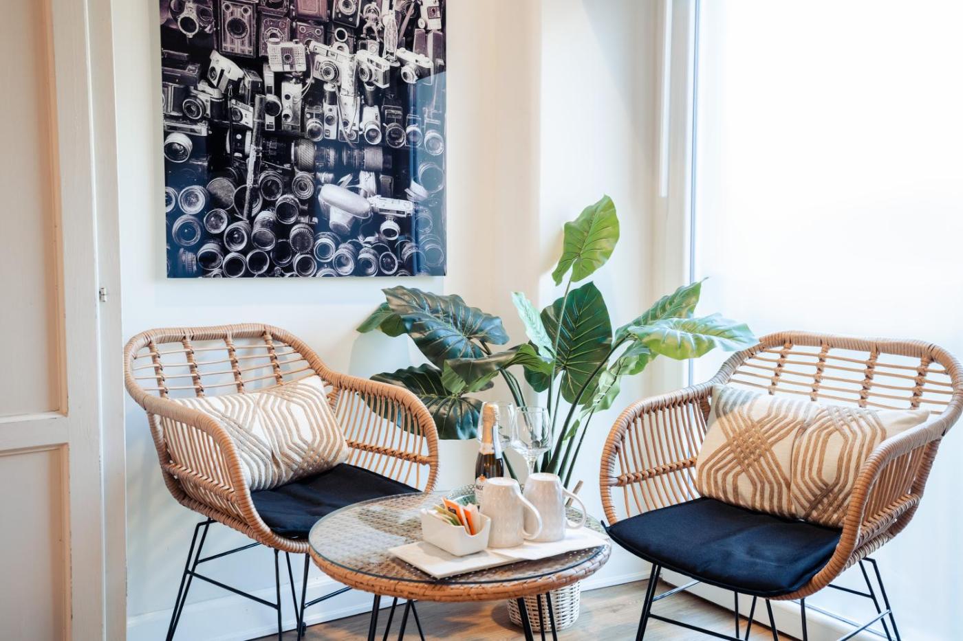 Camera Deluxe. Camera matrimoniale dotata di bagno privato con doccia, bidet,di cortesia e asciugacapelli. Questa sistemazione climatizzata presenta una TV a schermo piatto con servizi di streaming, un minibar e unper la preparazione di tè e caffè. ;
