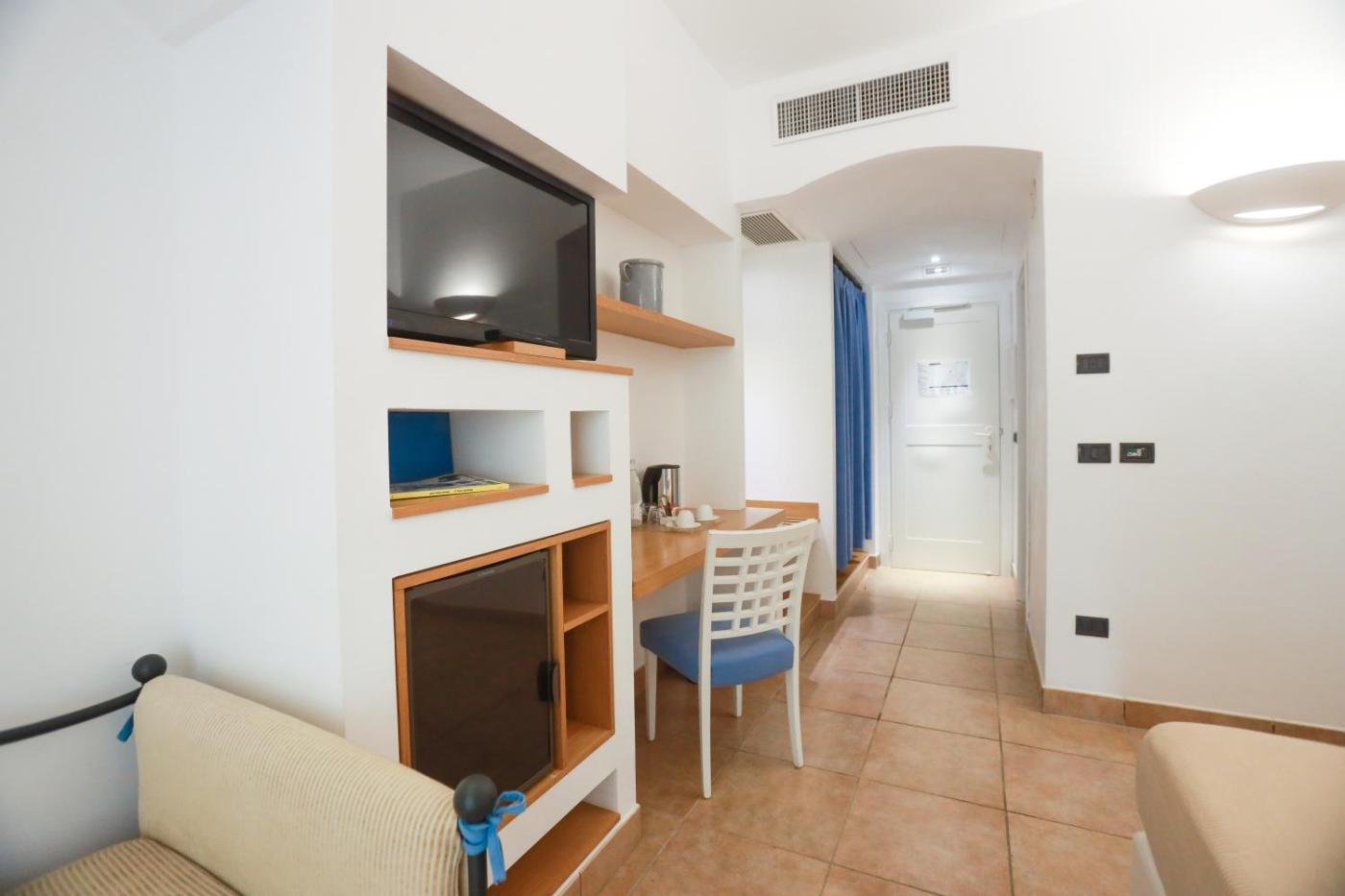 Junior Suite. Camera più spaziosa dotata di area salotto e bagno interno completamente attrezzato con un’ampia doccia.