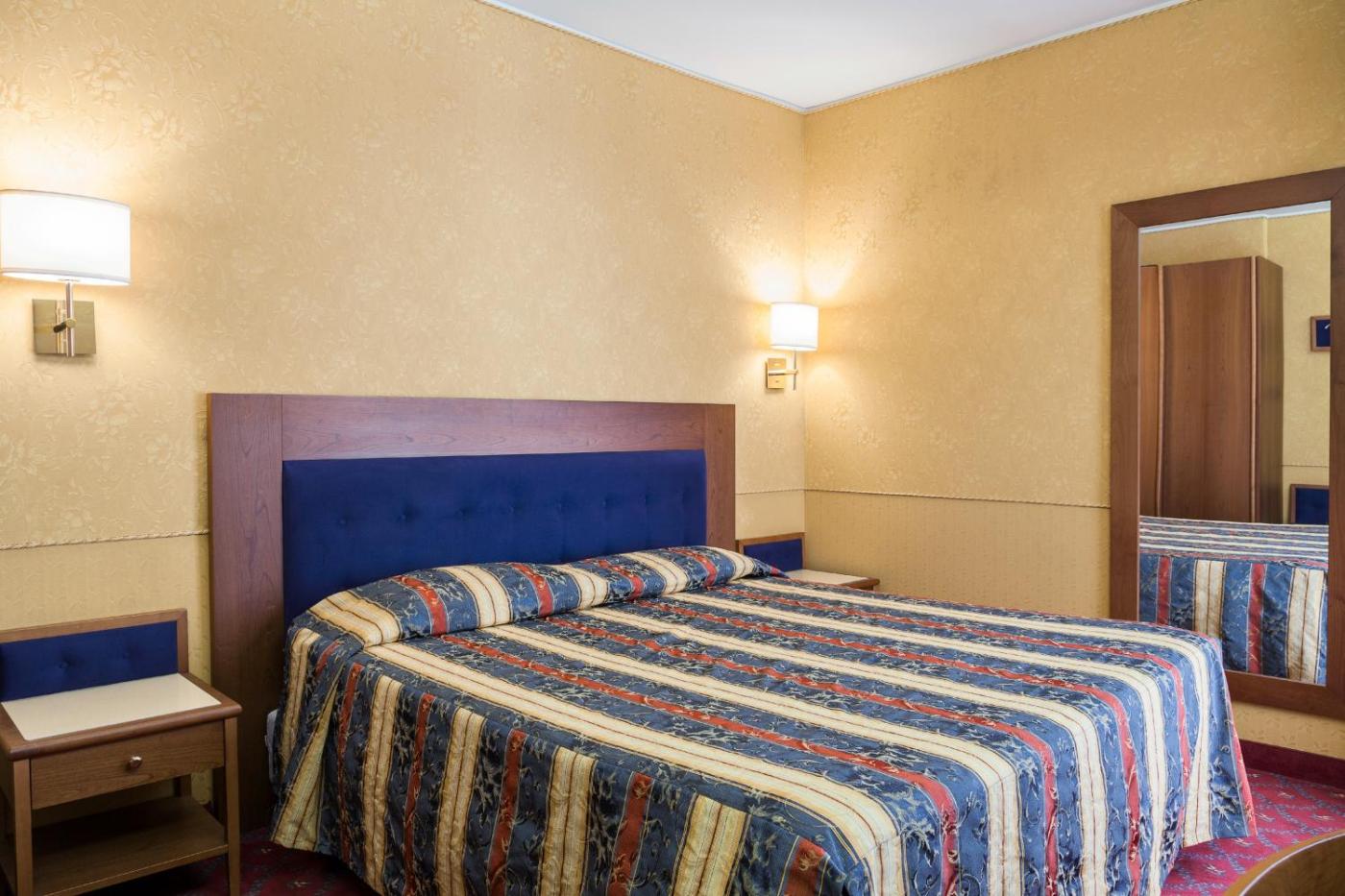 Camera Matrimoniale Piccola. Camera più piccola con aria condizionata, TV satellitare e bagno interno. Alcune sistemazioni sono dotate di balcone. Include una bottiglia dacqua in omaggio al giorno e canali Sky. ;
