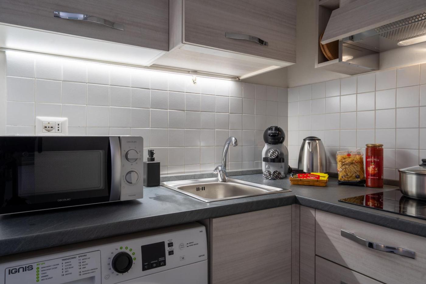 Appartamento con 1 Camera da Letto. This apartment features 1 living room, 1 separate bedroom and 1 bathroom with a shower and free toiletries. Guests can make meals in the kitchen that has a stovetop, a refrigerator, kitchenware and a microwave. The apartment has tiled floors, a seating area with a flat-screen TV, a washing machine, a tea and coffee maker as well as ancourtyard view. The unit has 1 bed.