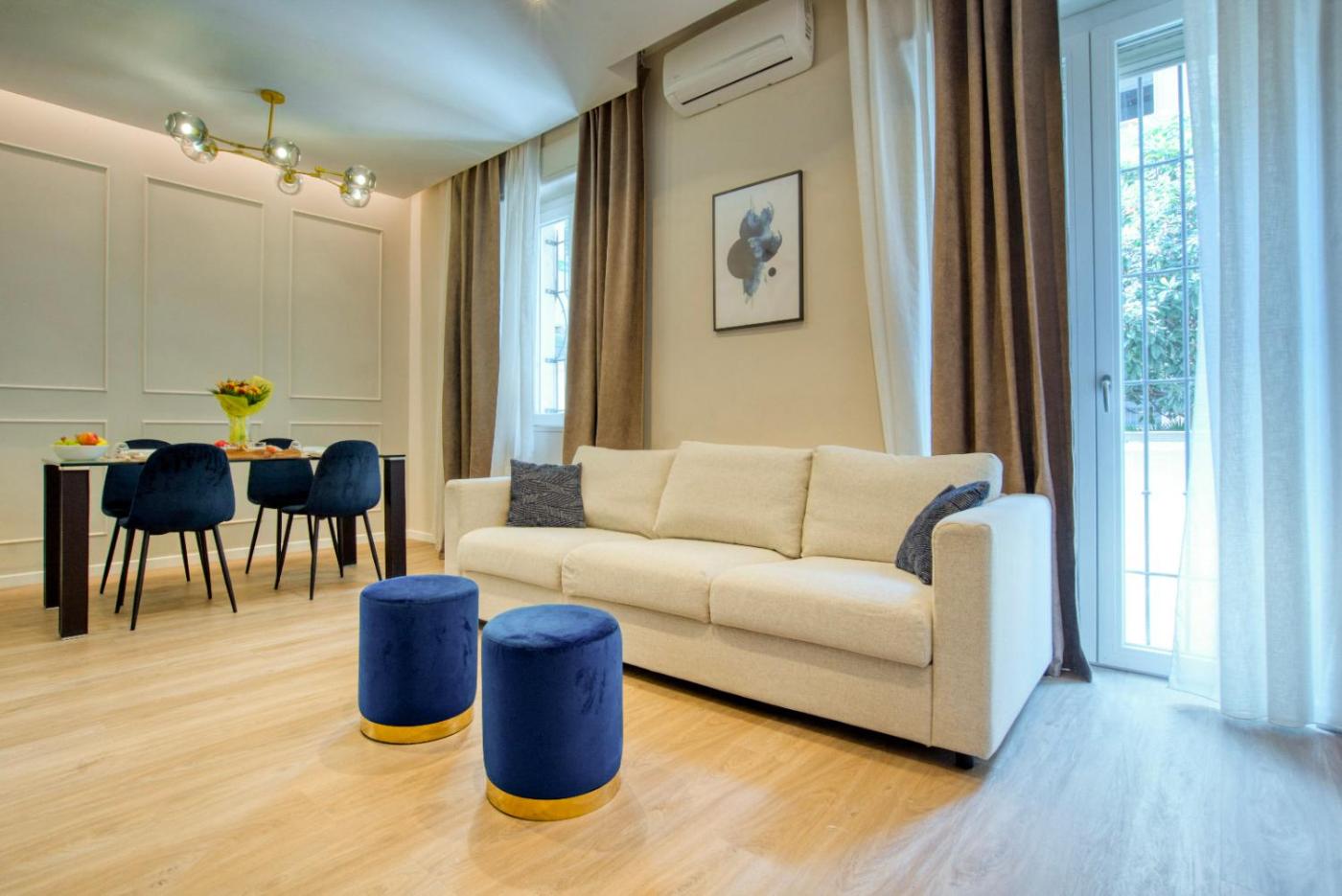Appartamento con 2 Camere da Letto. Ampio appartamento composto da 1 soggiorno, 2 camere da letto separate e 2 bagni con doccia edi cortesia. La cucina è ben attrezzata con utensili, piano cottura, frigorifero e lavastoviglie. Questa sistemazione climatizzata dispone di TV a schermo piatto con servizi di streaming, lavatrice, macchina da caffè, area salotto e vista su un cortile interno. L’alloggio presenta 3 letti.
