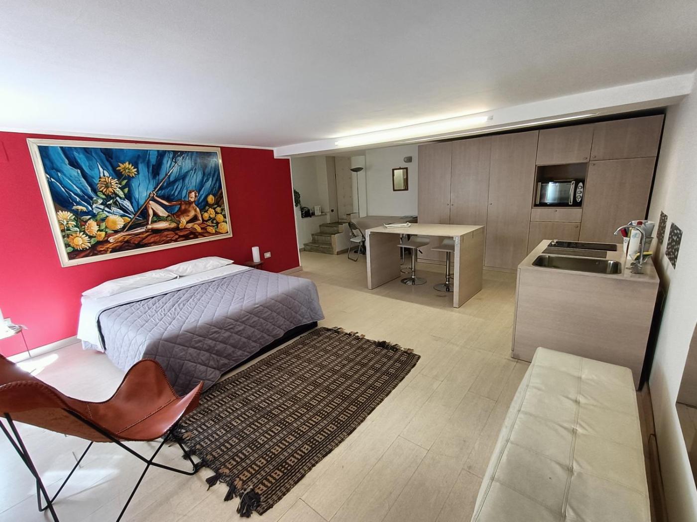 Loft. Appartamento composto da 1 soggiorno, 1 camera da letto separata e 1 bagno con doccia a filo pavimento edi cortesia. L’angolo cottura è ben attrezzato con fornelli, frigorifero, forno a microonde e utensili da cucina. L’unità abitativa è dotata di aria condizionata, TV a schermo piatto, lavatrice, armadio e bollitore elettrico. L’alloggio presenta 2 letti.