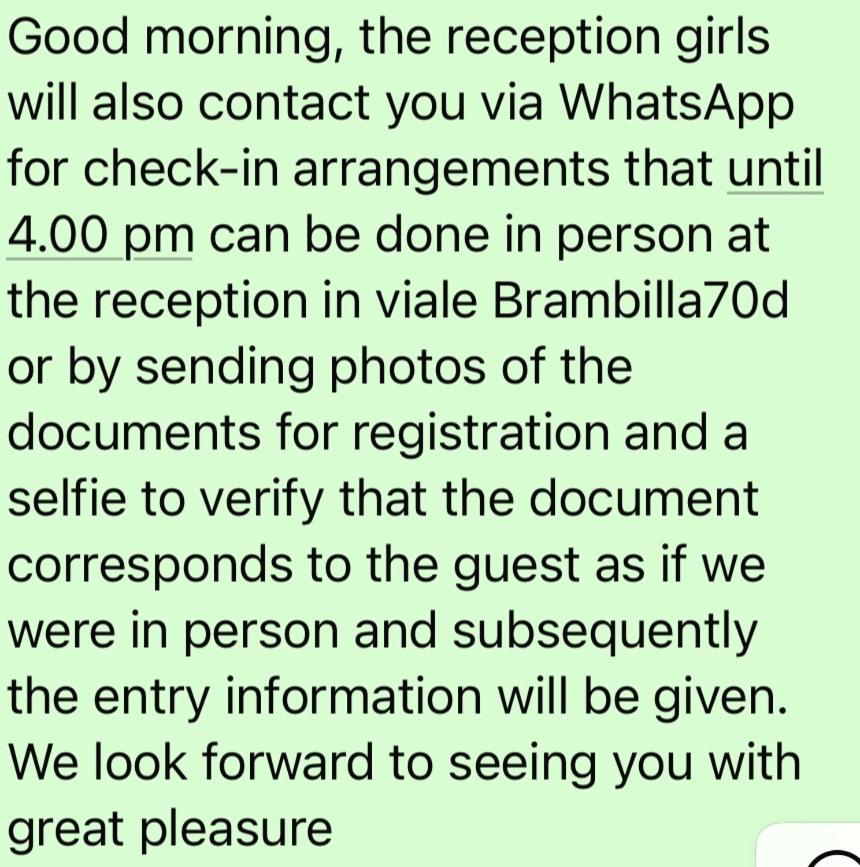 Siete pregati di comunicare in anticipo a lorario in cui prevedete di arrivare. Potrete inserire questa informazione nella sezione Richieste Speciali al momento della prenotazione, o contattare la struttura utilizzando i recapiti riportati nella conferma della prenotazione.