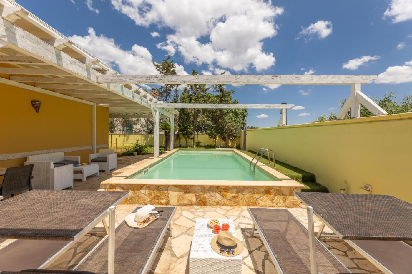 Villa con 3 Camere da Letto. The private pool is the special feature of this villa. The air-conditioned villa features 3 bedrooms, 2 bathrooms and a kitchen. The villas kitchen is available for cooking and storing food. This villa offers a washing machine, a flat-screen TV and garden views. The unit offers 6 beds.