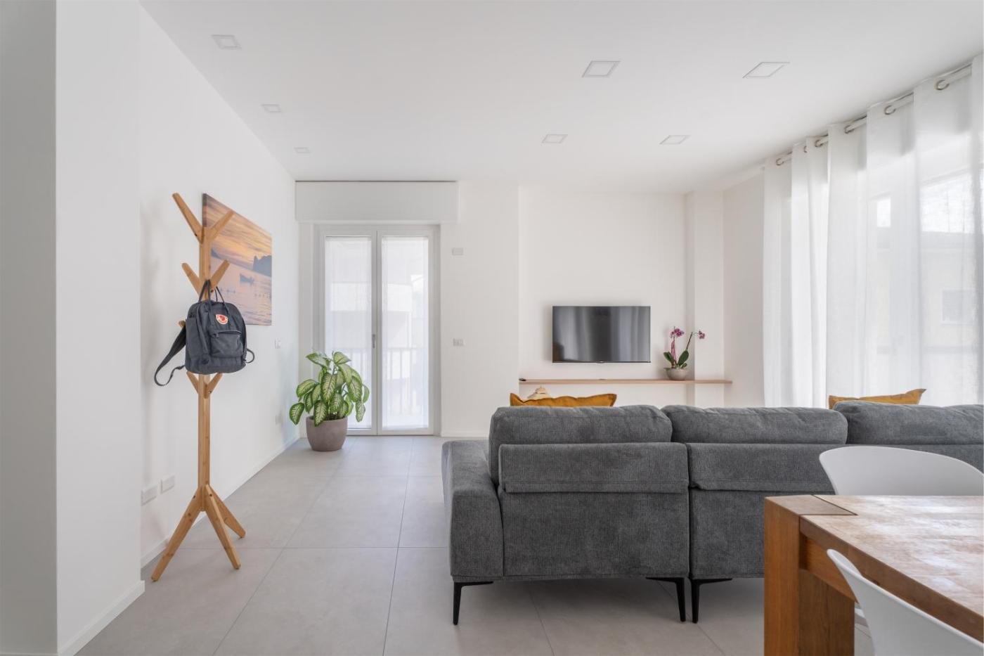 Appartamento con 3 Camere da Letto e con Balcone. Featuring a private entrance, this air-conditioned apartment consists of 1 living room, 3 separate bedrooms and 2 bathrooms with a shower and a bidet. Guests can make meals in the kitchen that is equipped with a stovetop, a refrigerator, a dishwasher and kitchenware. The spacious apartment provides a washing machine, a tea and coffee maker, a seating area as well as a terrace with mountain views. The unit offers 4 beds.