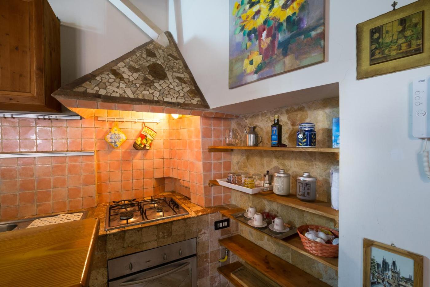Appartamento con 1 Camera da Letto. This air-conditioned apartment features 1 living room, 1 separate bedroom and 1 bathroom with a bath. Guests can make meals in the kitchen that has a stovetop, a refrigerator, kitchenware and an oven. The apartment features a seating area, a dining area, a wardrobe, a flat-screen TV, as well as a quiet street view. The unit has 2 beds.